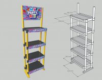 The multi stack display stand is made from injection moulded plastic and extruded pipe.
